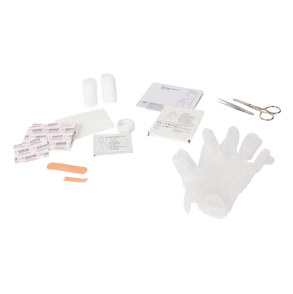 Apteczka zawiera zestaw 41 elementów i zawiera: