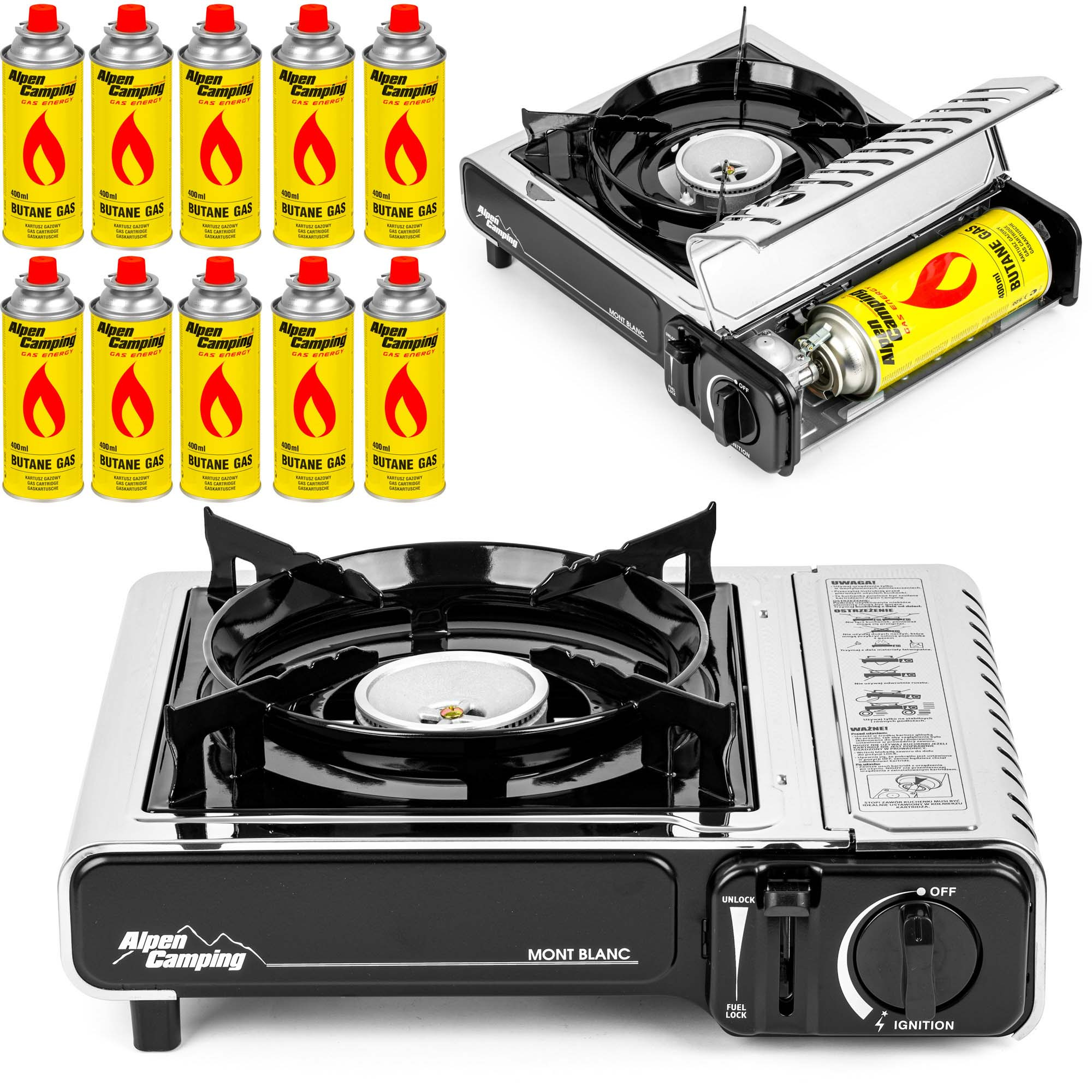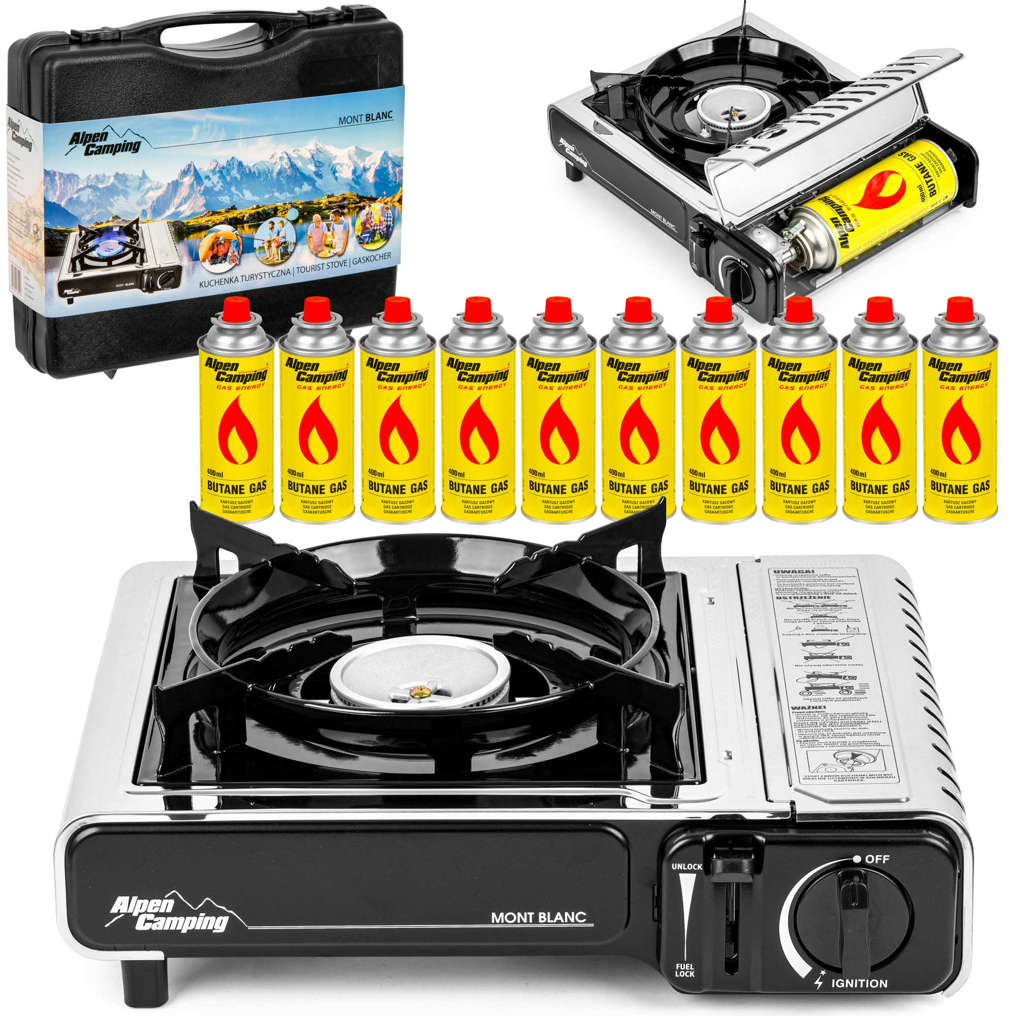 Zestaw zawiera kuchenkę gazową Alpen Camping MontBlanc + 10x kartuszy Alpen Camping