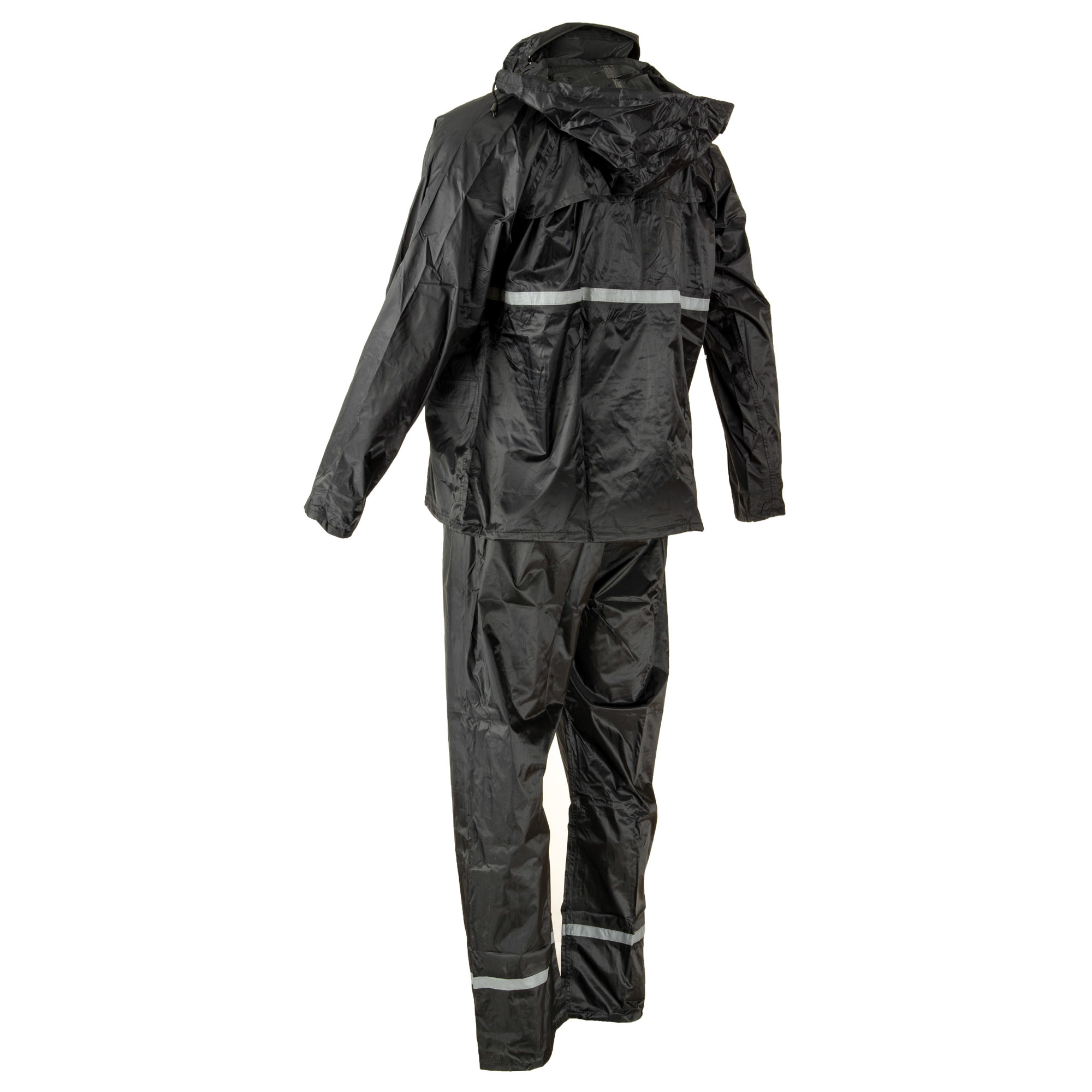 Rainwear zestaw przeciwdeszczowy przeznaczony do ochrony przed deszczem. Jest to mocna i wodoodporna odzież w kolorze czarnym. Zapewnia wygodę i ochronę przed nieoczekiwanym deszczem podczas jazdy na rowerze, spacerów lub innych aktywności na świeżym powietrzu.