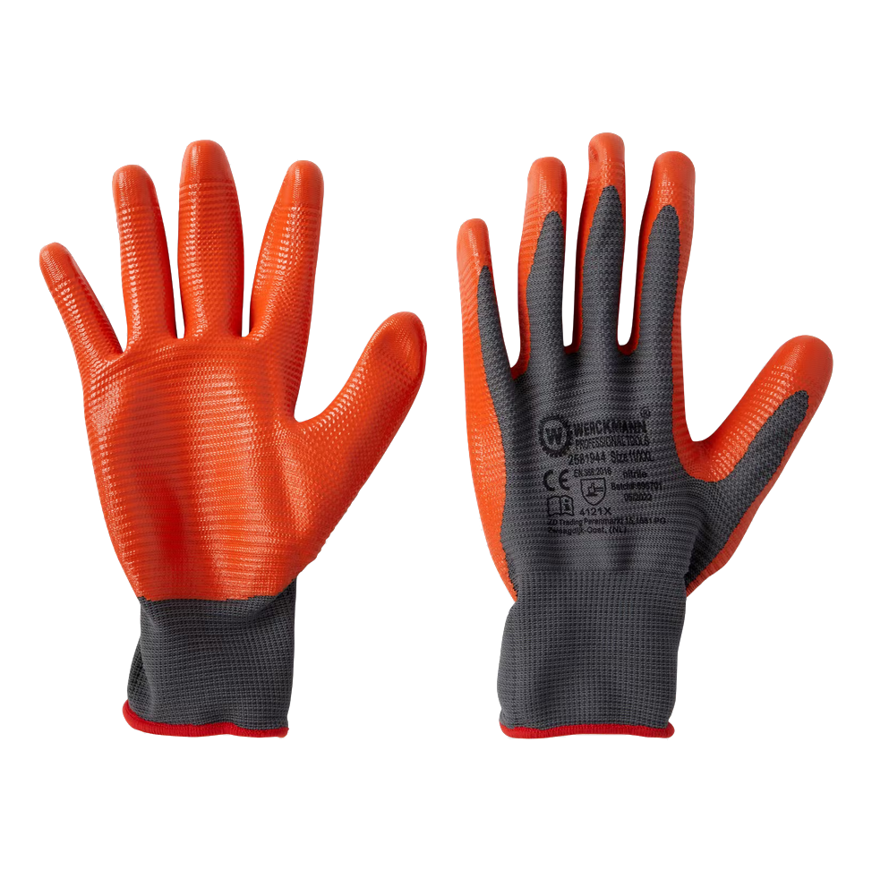 Rękawice Nitrylowe marki Werckmann rozmiar XL. Świetnie ochronią twoje dłonie przy pracy w domu i na podwórku/ogrodzie.